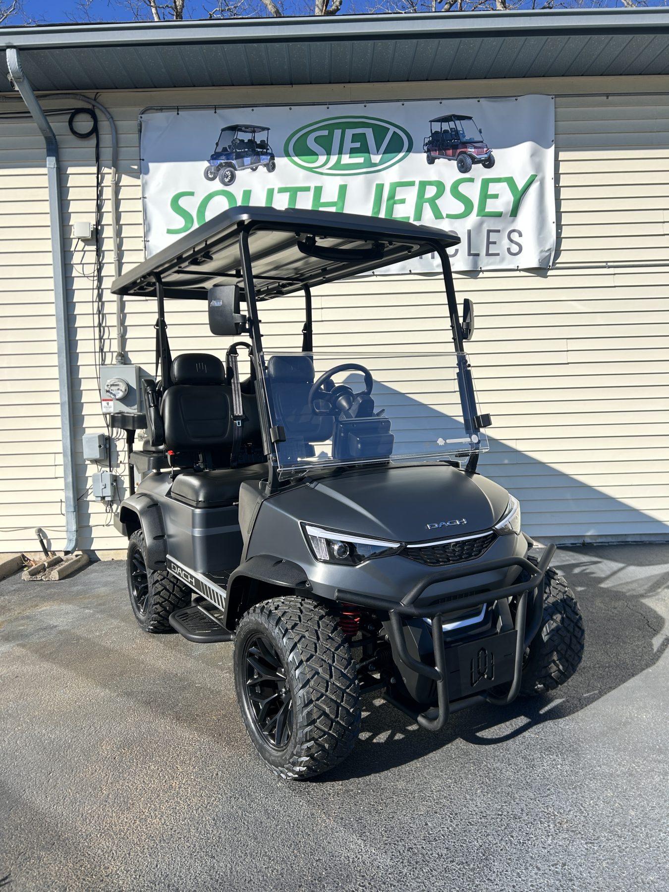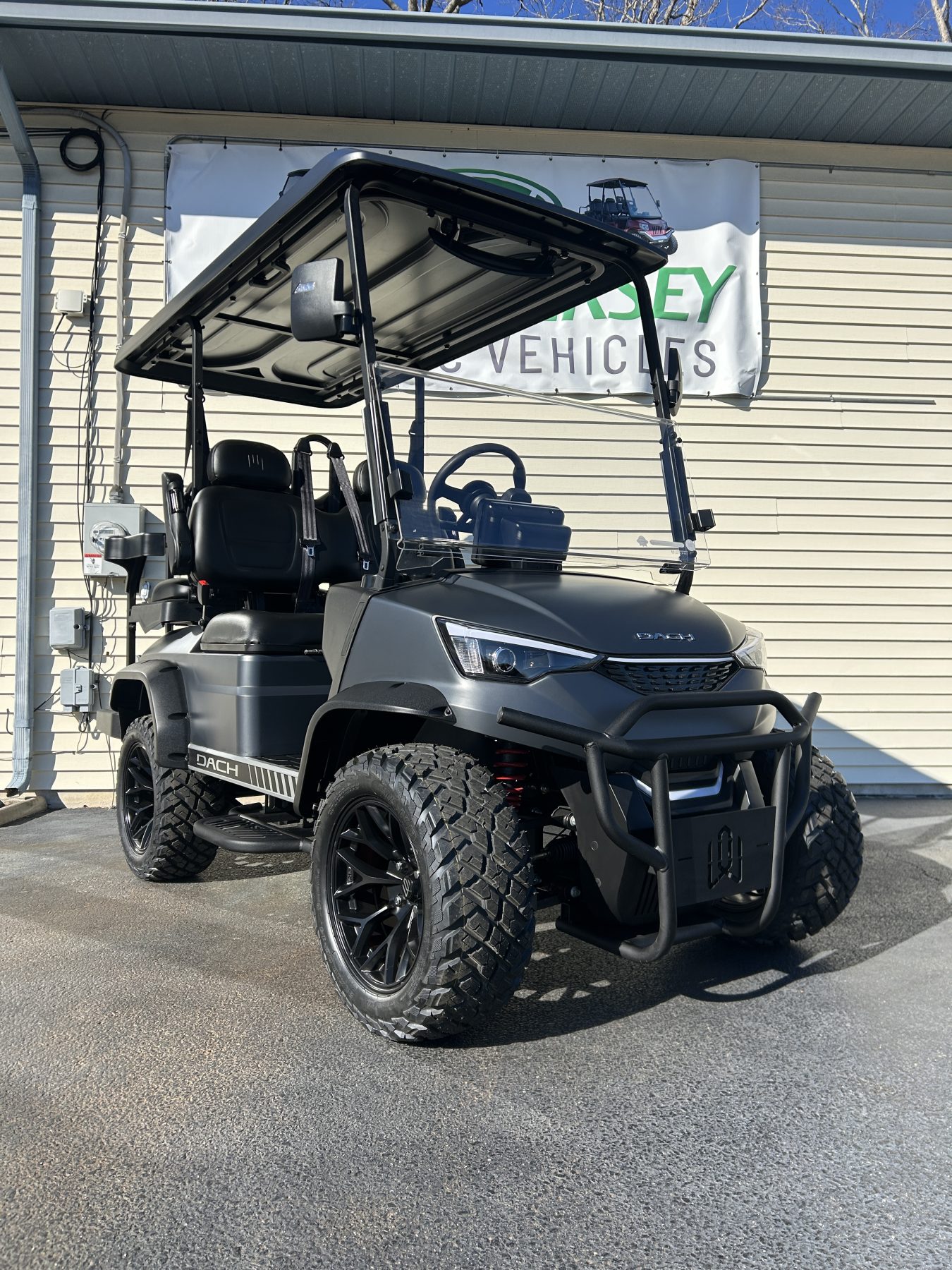 Solar-powered, family-friendly golf cart for leisure and practical use.